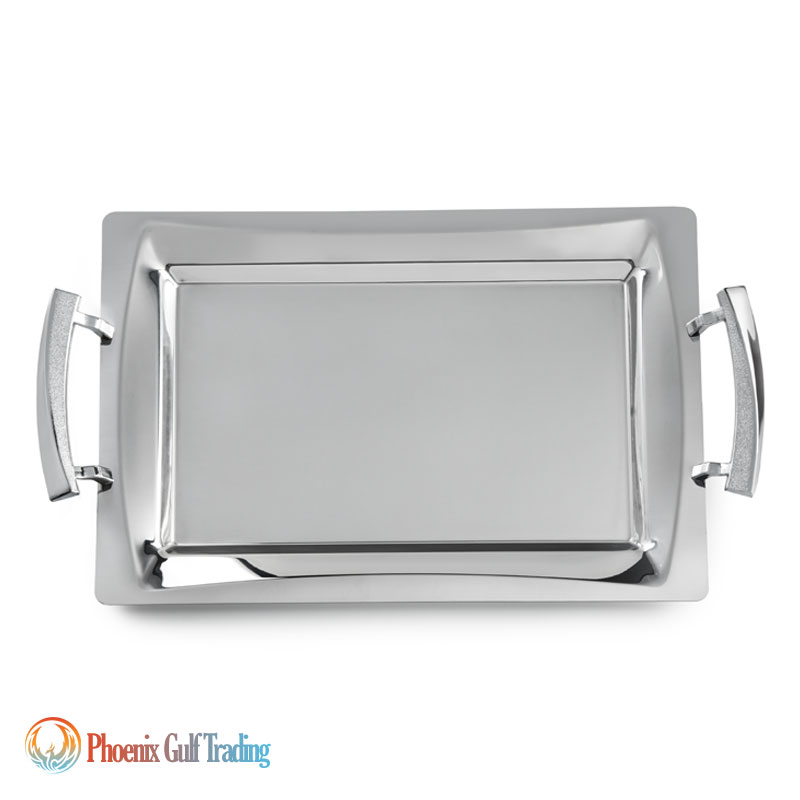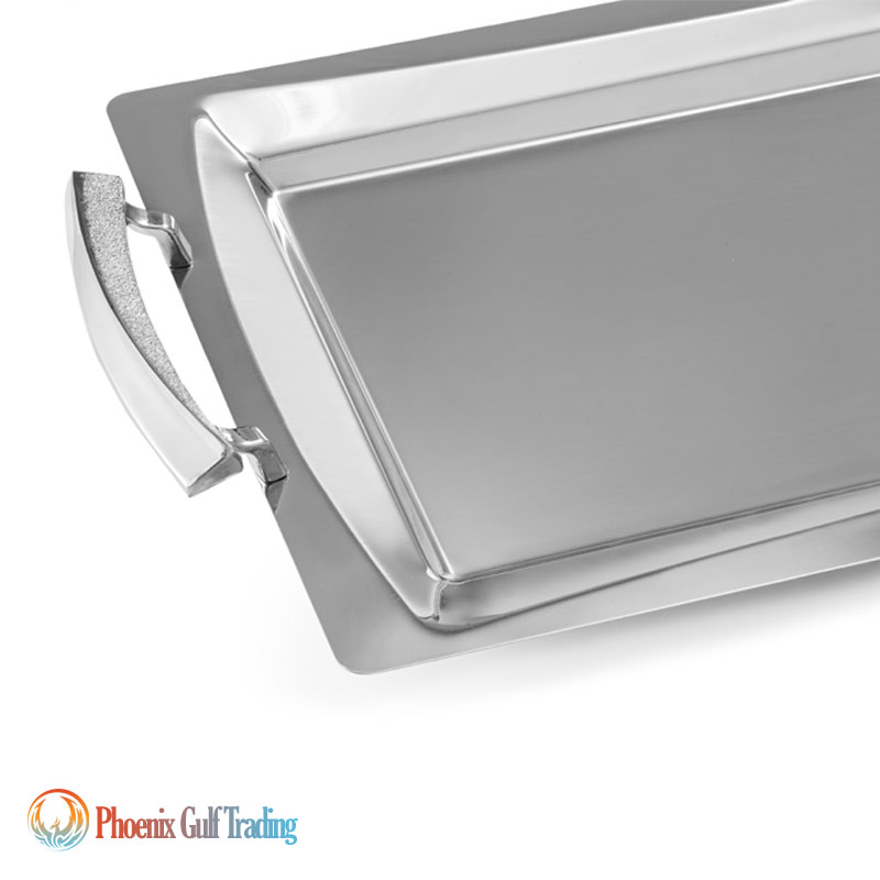 Product Description: Stainless steel tray set (pair) in two sizes: large & medium
