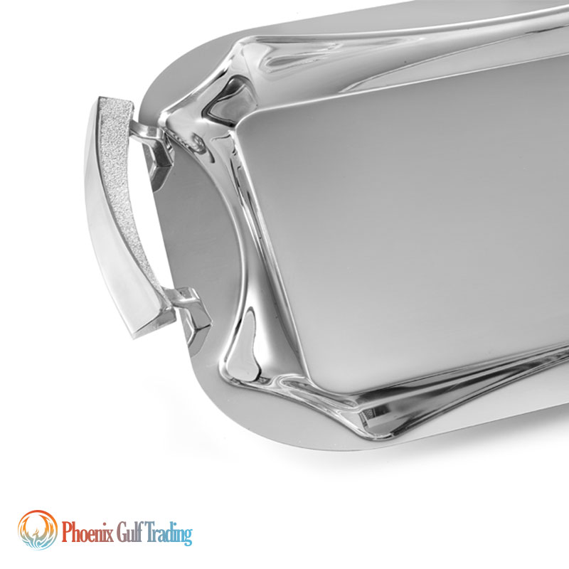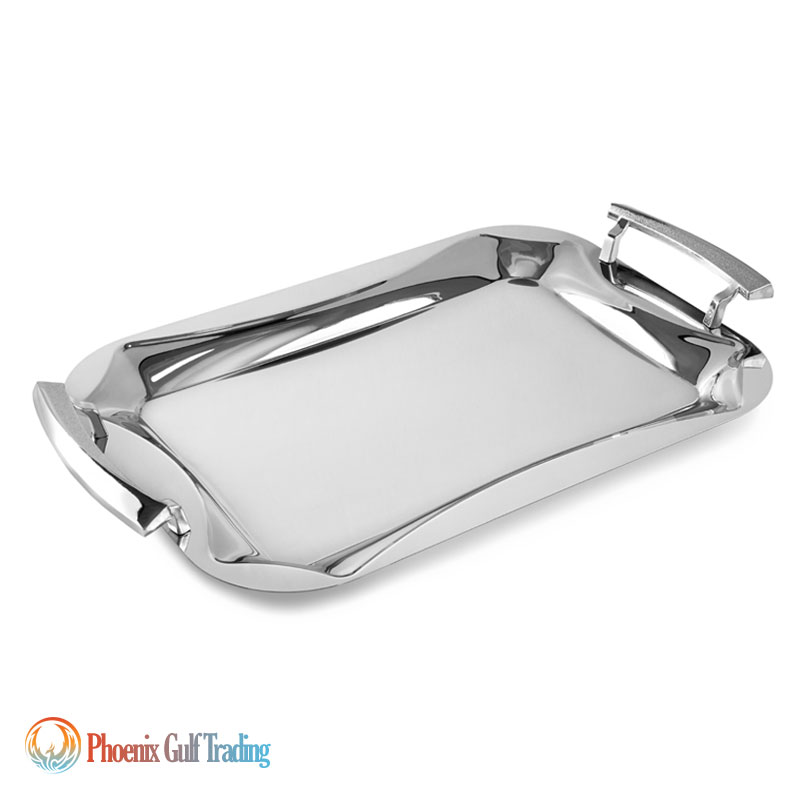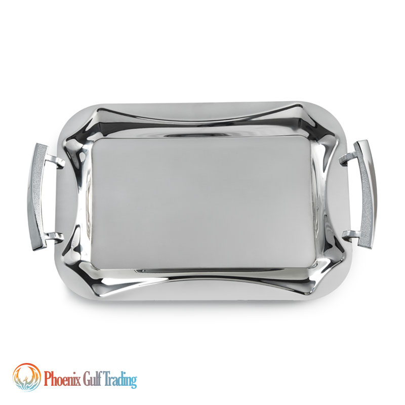 Product Description: Stainless steel tray set (pair) in two sizes: large & medium