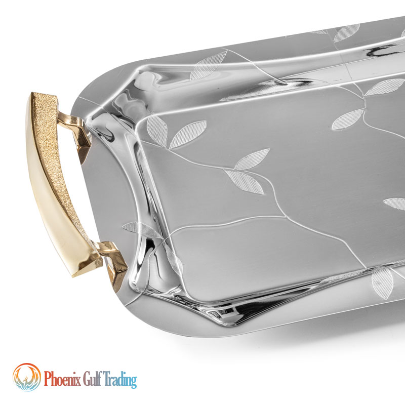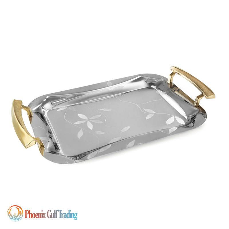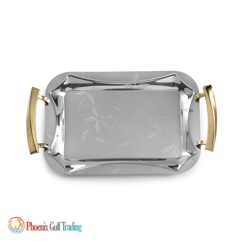 Product Description: Stainless steel tray set (pair) in two sizes: large & medium