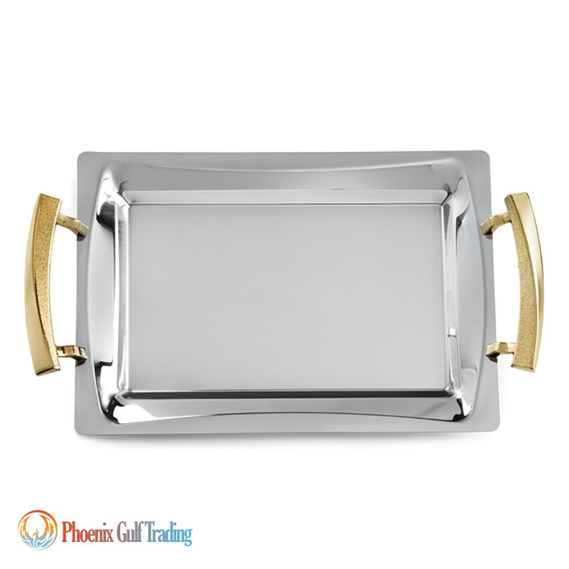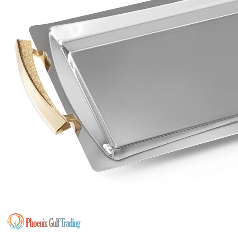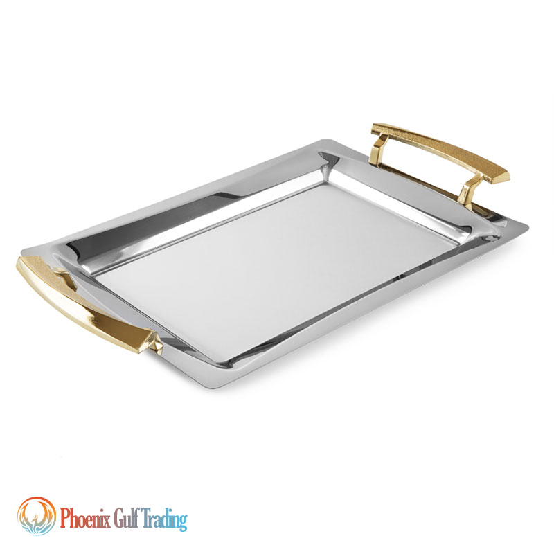 Product Description: Stainless steel tray set (pair) in two sizes: large & medium