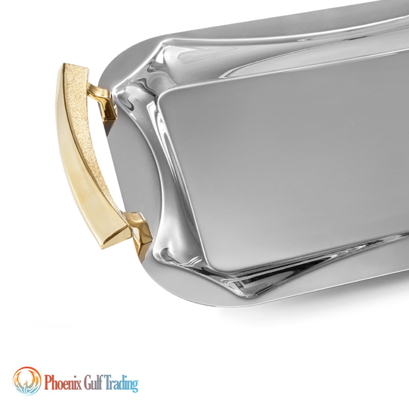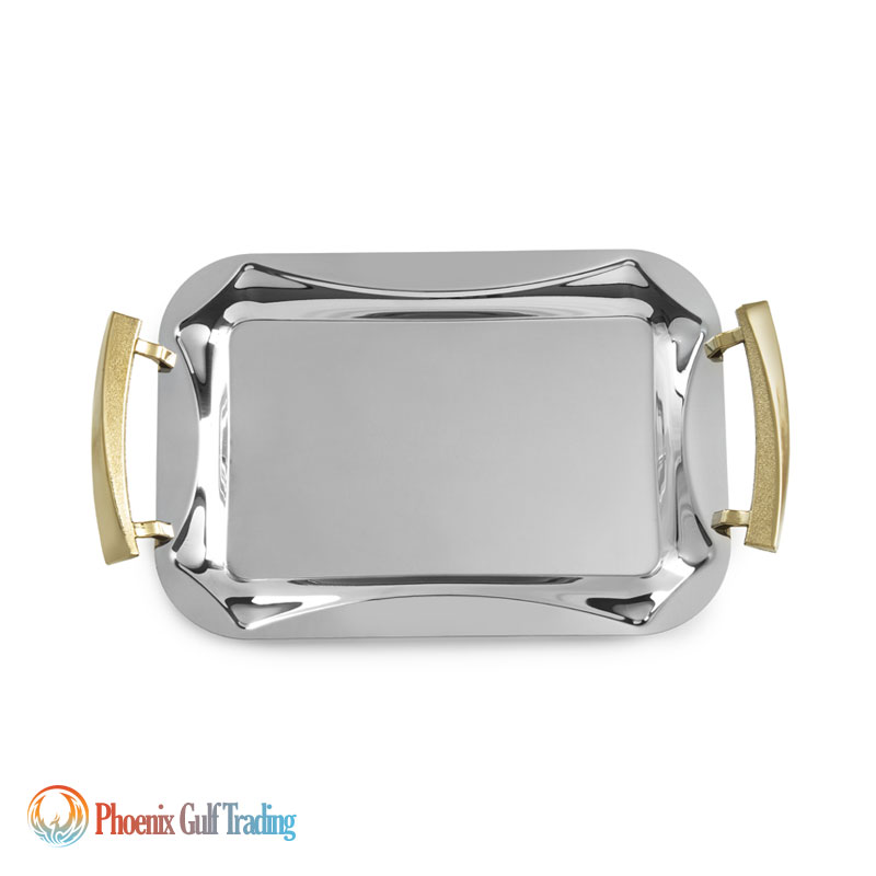 Product Description: Stainless steel tray set (pair) in two sizes: large & medium