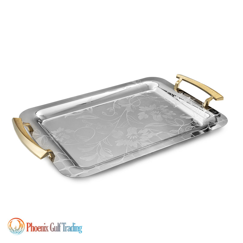 Product Description: Stainless steel tray set (pair) in two sizes: large & medium