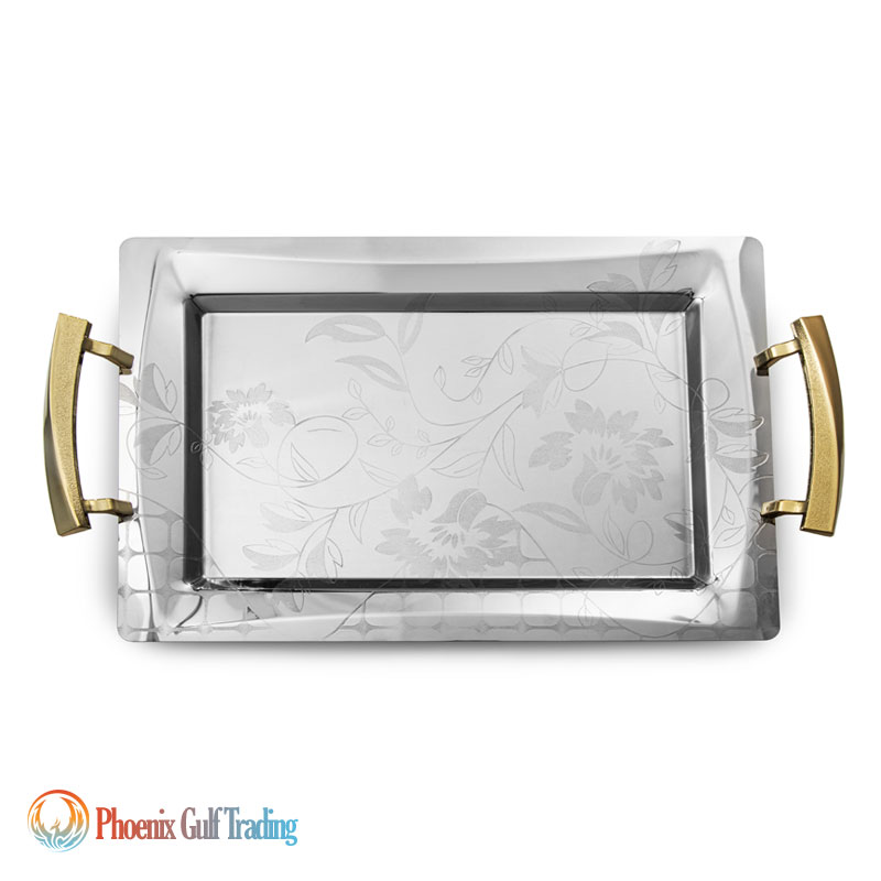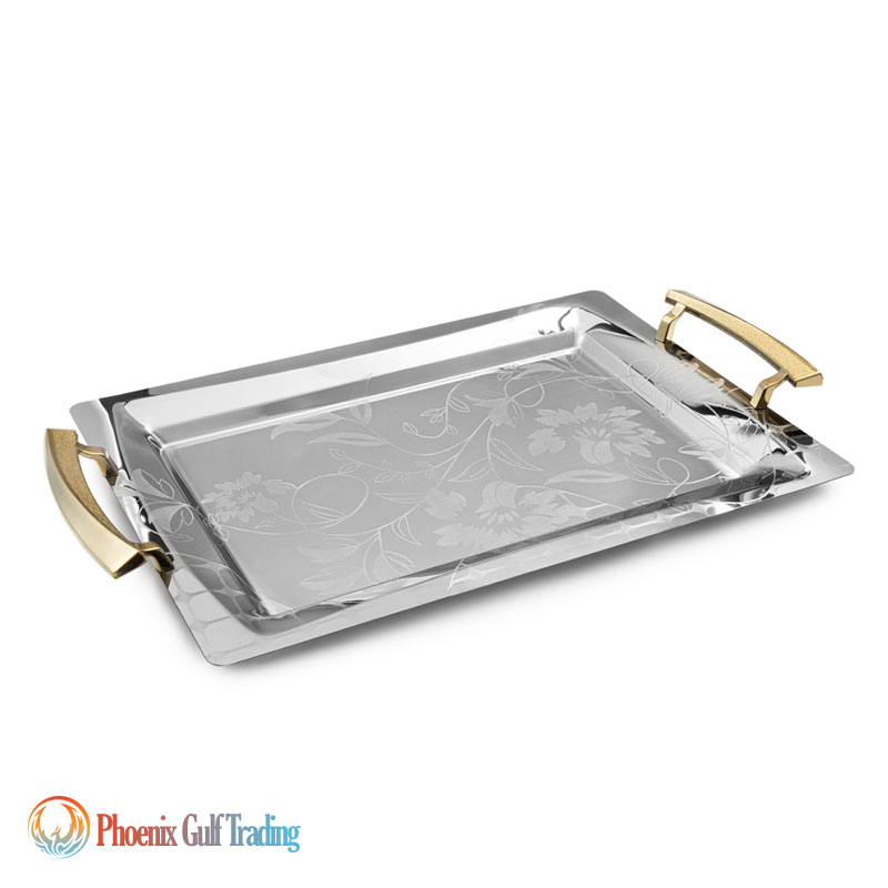 Product Description: Stainless steel tray set (pair) in two sizes: large & medium