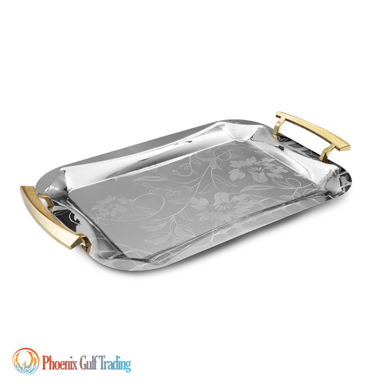 Product Description: Stainless steel tray set (pair) in two sizes: large & medium