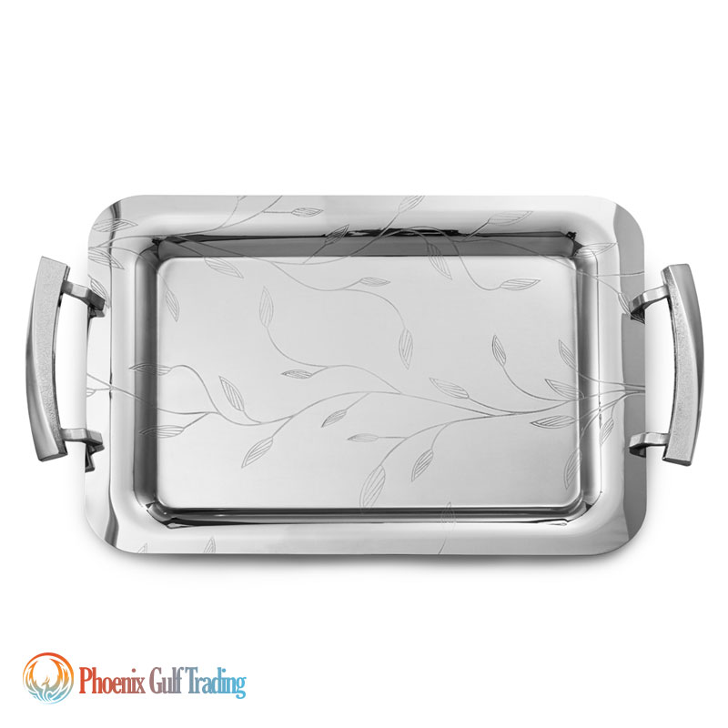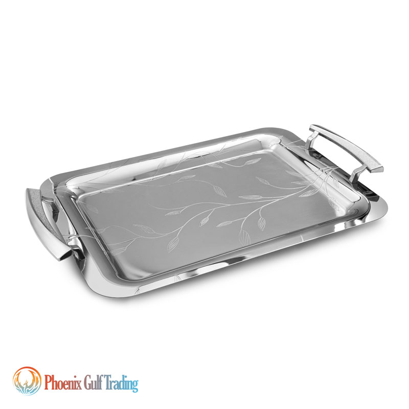 Product Description: Stainless steel tray set (pair) in two sizes: large & medium