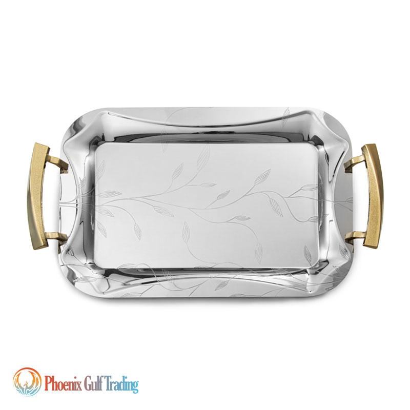 Product Description: Stainless steel tray set (pair) in two sizes: large & medium